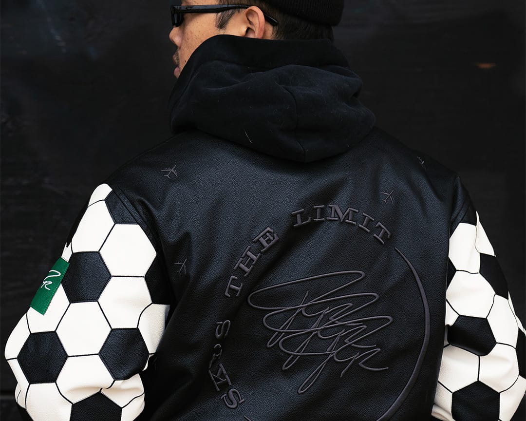 RRose From Concrete is honoring Pelé with a limited-edition varsity jacket that blends football history with streetwear craft. Inspired by a Jean Paul Gaultier jacket Pelé wore in the 1980s, the piece features soccer ball–patterned sleeves, premium faux leather, and a quilted interior, with a custom portrait patch stitched inside. Dropping January 23, 2026 in limited quantities, the jacket is positioned as wearable tribute, celebrating Pelé’s impact on sport, culture, and the belief that greatness can come from anywhere.